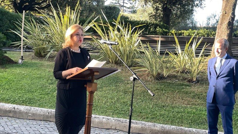 En la ceremonia de la siembra del árbol, después de las palabras de agradecimiento de la embajadora de Panamá ante la Santa Sede, Miroslava Rosas, mencionó los cien años de fructíferas relaciones entre ambos estados, caracterizadas por una misión común en aras de un desarrollo sostenible para ambas naciones. Rosas recordó que Panamá comparte la visión central de la encíclica del Papa Francisco, Laudato si', que pone a la persona como principal valor que se debe proteger en nuestra casa común; mencionó también la Laudate Deum, en la que Francisco ha subrayado de nuevo que la cuestión medioambiental es primordialmente una cuestión de defensa de la dignidad humana. Este eje, dijo la diplomática, es uno de los temas que Panamá fortalecerá, en sus relaciones con la Santa Sede propiciando acciones conjuntas para conseguir objetivos y metas comunes. Por último, recordó las palabras de Francisco, que dijo que los signos del tiempo muestran que la fraternidad humana y el cuidado de la creación forman una única vía hacia el desarrollo integral y la paz.