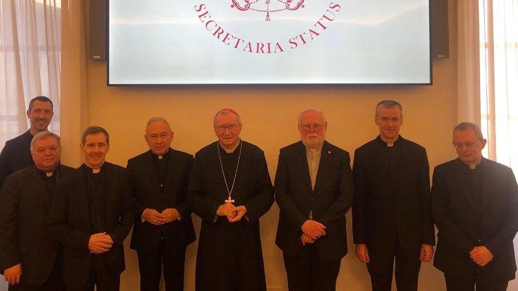 El anuncio lo hizo esta mañana, pasadas las 12 horas, el cardenal secretario de Estado, Pietro Parolin, en presencia del sustituto, monseñor Edgar Peña Parra, del secretario para las Relaciones con los Estados y las Relaciones Internacionales, monseñor Paul Richard Gallagher, del arzobispo Luciano Russo, de la Sección Tercera, y del personal de las distintas oficinas.