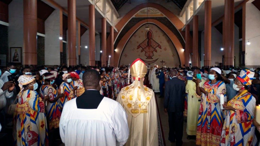 Les personnes consacrées ont rempli la Cathédrale Notre Dame des victoires de Yaoundé, le 2 février 2021, pour célébrer la journée mondiale de prière pour la Vie consacrée en présence du Cardinal Parolin, Secrétaire d’Etat du Saint-Siège, qui concluait ainsi sa semaine de visite au Cameroun.