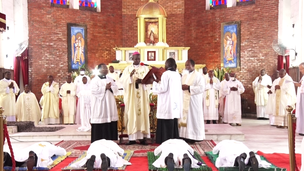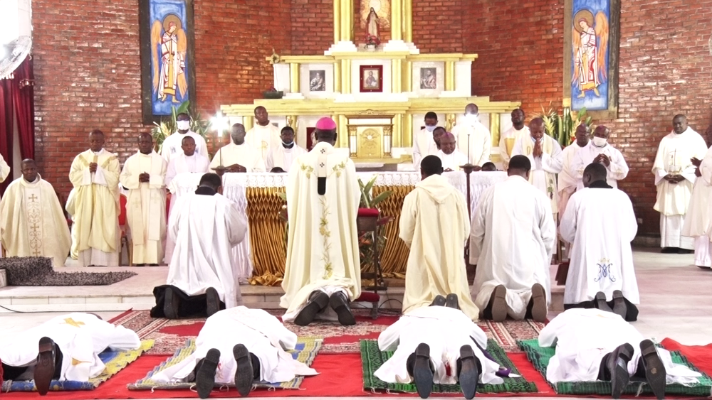 Un serviteur n’est pas plus grand que son maître. Le Christ dit en effet : « Si l’on m’a persécuté, on vous persécutera ; si l’on a gardé ma parole, on gardera aussi la vôtre ». Nous devenons prêtres pour nous réaliser comme hommes de Dieu, pleinement serviteurs-esclaves, soumis en tout à Notre Seigneur. En répondant à son appel, nous acceptons de mourir pour lui, de marcher sur le chemin où lui-même a marché, en exerçant notre ministère selon ses recommandations parmi lesquels : « Devenez des modèles du troupeau que vous conduisez ». Vous acceptez donc, aujourd’hui, la charge d’annoncer l’évangile, en mettant toute votre intelligence en œuvre pour accomplir cette mission. Sachez bien que vous avez à suivre le témoignage de tous ceux qui nous ont précédés, tels Saint Paul et ses compagnons, et qui se sont laissé orienter par la puissance de l’Esprit-Saint pour proclamer l’Evangile. Ils ont compris que c’est au prix de leur vie qu’ils pouvaient fidèlement répondre à l’appel du Seigneur. Dès lors, vous ne vous appartenez plus, parce que le Seigneur vous a choisis et mis à part. Nous prions pour vous. Soyez de bons prêtres, faisant chaque jour don de votre vie à Jésus et à vos frères et sœurs ».