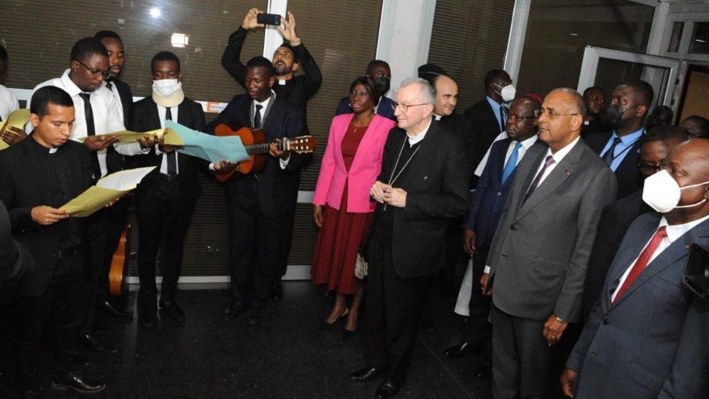 A son arrivée, le cardinal Parolin a été chaleureusement accueilli par le Premier ministre, chef du gouvernement ivoirien, Patrick Jérôme Achi ainsi que le Cardinal Jean-Pierre Kutwa, archevêque métropolitain d’Abidjan et Mgr Ignace Bessi Dogbo, archevêque de Korhogo, président de la Conférence épiscopale en présence du nonce apostolique en Côte d’Ivoire, Mgr Paolo Borgia et de Mgr Jean-Sylvain Emien Mambé.