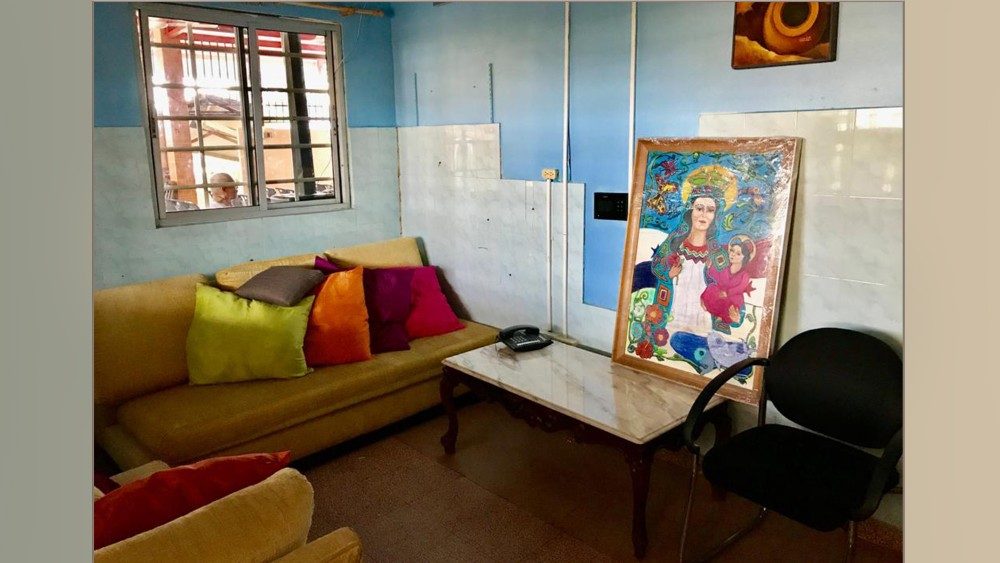 Eric Rodriguez, l’administrateur du centre nous accueille. Ce solide Panaméen explique que les préparatifs sont en cours: «On espère que tout sera fini avant dimanche», lâche-t-il en esquissant un bref sourire, avant de montrer la toute petite salle où se reposera le Pape en arrivant, ainsi que l’image de la Vierge Marie, peinte pour l’occasion par les résidents.
