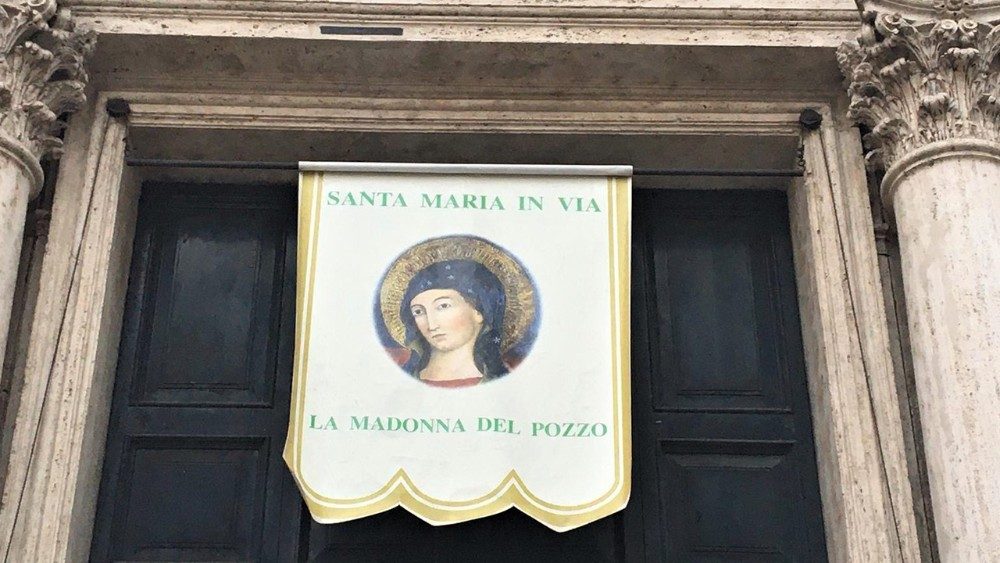 Mais avant que la pesante tuile ne sombre au fond du puits, les eaux se déversèrent subitement en abondance, la faisant rejaillir à la surface. Stupeur et tremblements dans les écuries du palais Capocci. L’on réveille le cardinal. Sidéré et émerveillé, ce noble apparenté aux plus grandes familles romaines recueille l’image sacrée flottant prodigieusement. Le cardinal-chanoine de la basilique Saint-Pierre vient la présenter dès l’aube au Saint-Père, le Pape Alexandre IV (1199-1261). Le pontife atteste du miracle à l’issue d’un processus canonique, et offre l’image en vénération. À l’emplacement très contigu du fameux puits, le cardinal Capocci fait immédiatement ériger une chapelle et construire à cet endroit une église. Ainsi naquit l’église Santa Maria in Via abritant la chapelle de la Madonne du Puits -Madonna del Pozzo, en italien.