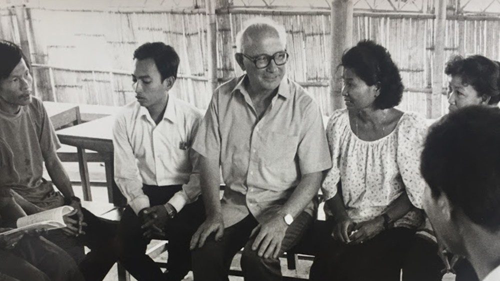 Dès 1991, il encourage les Cambodgiens à rebâtir leur Église. Un premier synode a lieu le 30 avril de cette année: 602 familles, 350 catholiques venus des camps et dix mille Vietnamiens y participent.