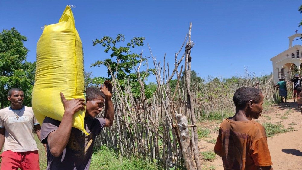 De décembre à mars, l’île de Madagascar est enveloppée par la saison des pluies. Pourtant, dans la pointe sud de la Grande Ile, le ciel reste éternellement sec. «Les averses restent très rares, alors les gens recueillent l’eau dans les trous sur les routes», explique le père Jean, la population sombre dans la pauvreté et la famine, «des enfants meurent de faim».