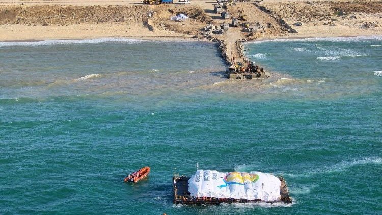 Une barge en provenance de Chypre avec de la nourriture, arrive à Gaza le 15 mars