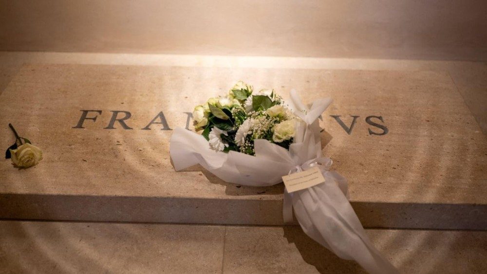 Dès son arrivée à Rome, le président Mahmoud Abbas a tenu à se rendre sur la tombe de François à Sainte-Marie-Majeure pour un moment de recueillement. Sous haute sécurité, à 16h30, le chef de l’Autorité palestinienne, accompagné du père Ibrahim Faltas, ancien vicaire de la Custodie de Terre Sainte, et de son entourage, a franchi la porte de la basilique pour en ressortir un quart d'heure plus tard. Mahmoud Abbas a déposé une gerbe de fleurs sur le tombeau en marbre portant l'inscription Franciscus.
