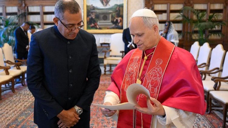 Le président de la République démocratique de São Tomé-et-Príncipe, Carlos Manuel Vila Nova, a été reçu en audience par le Pape Léon XIV au palais apostolique du Vatican ce matin, lundi 30 juin. Le chef de l'État a ensuite rencontré Mgr Paul Richard Gallagher, secrétaire pour les Relations avec les États et les organisations internationales.