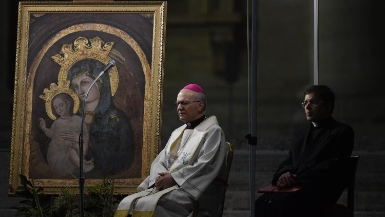 Après la récitation des cinq Ave Maria, du Salve Regina et des Litanies de Lorette, Mgr Zani a invoqué Dieu pour que, par l'intercession de la Vierge, il soutienne la foi et ravive l'espérance des croyants, «afin qu'aucun obstacle» ne les fasse «dévier du chemin qui mène au salut ». Enfin, la prière mariale s'est achevée par l'Oremus pro Pontifice et un hymne à la Vierge Marie.