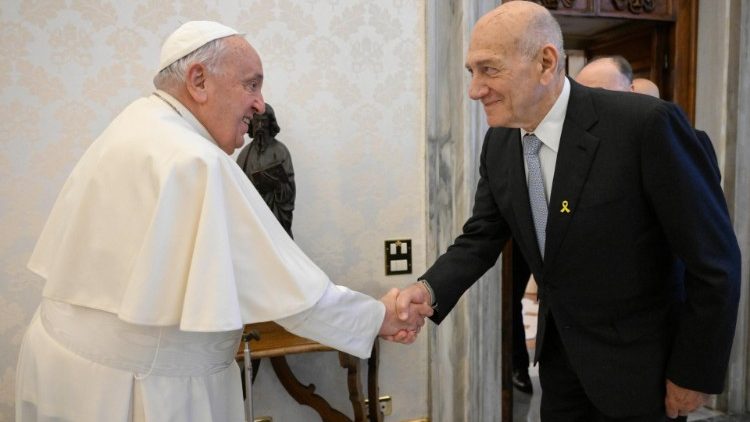האפיפיור פרנציסקוס וראש הממשלה לשעבר אהוד אולמרט