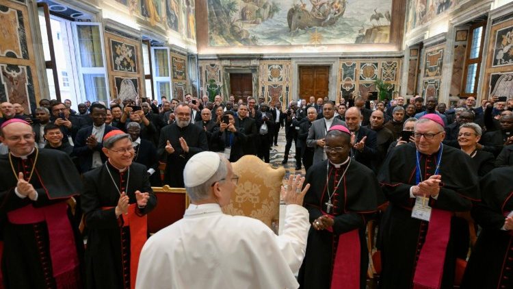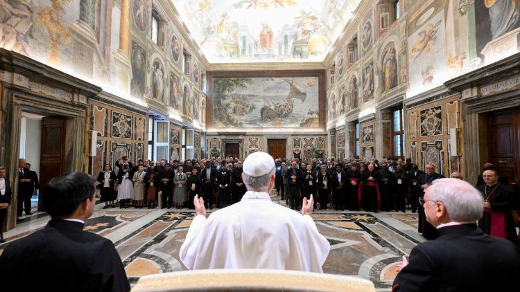 האפיפיור, שדיבר באנגלית והזכיר את התקופה שבה הוא היה בשליחות, שיבח את אלה שייצגו למעלה מ-120 מדינות בפניו על עבודתם המשמעותית למען הכנסייה בעולם.