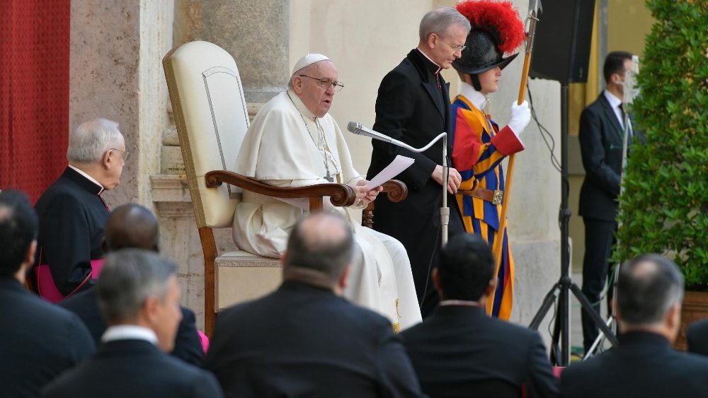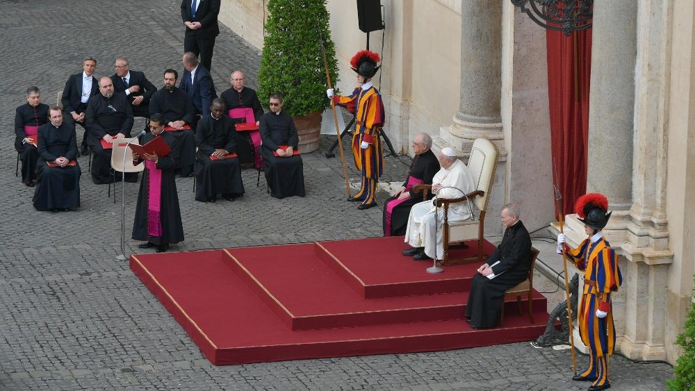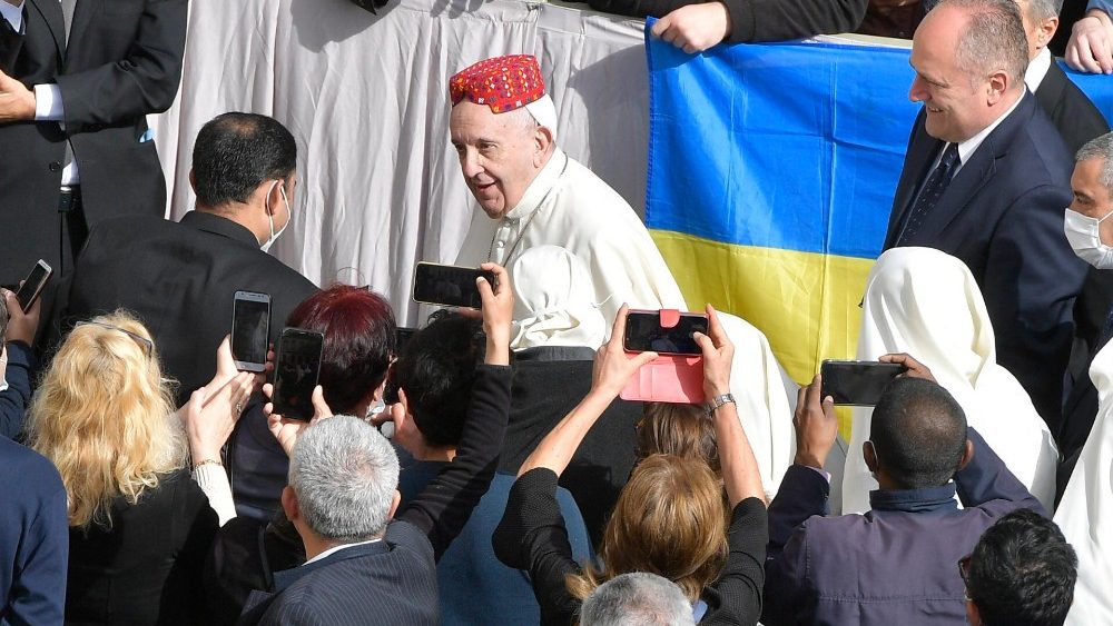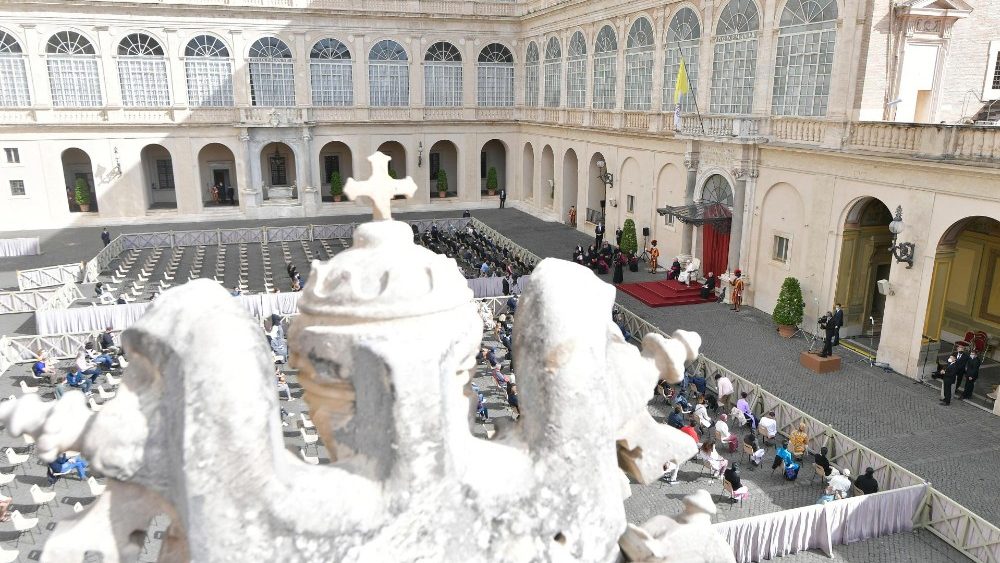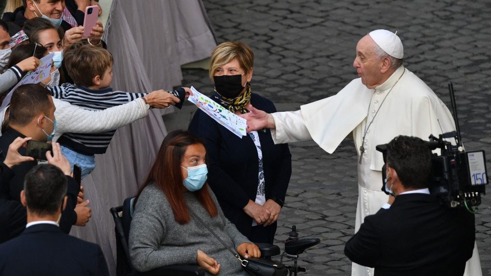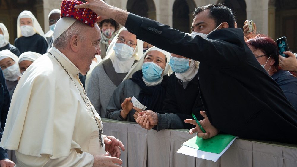 Papa Franjo je danas, nakon dugog vremena, opću audijenciju ponovno održao u prisutnosti vjernika, u Dvorištu svetoga Damaza Apostolske palače u Vatikanu. Drago mi je da smo na ovom susretu ponovno licem u lice jer, reći vam nešto: nije lijepo govoriti ni pred čim, samo nekoj kameri. Nije lijepo – istaknuo je Papa na početku kateheze te dodao da je, naprotiv, lijepo ponovno susresti ljude, svakoga s vlastitom životnom pričom. Hvala vam na vašoj prisutnosti i vašem posjetu. Ponesite Papinu poruku svima. Papina je poruka da molim za sve, i molim njih da mole za mene sjedinjeni u molitvi.