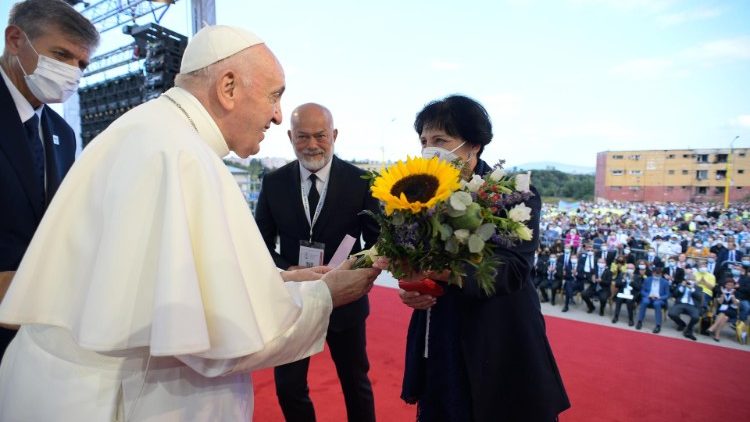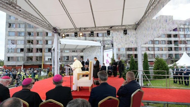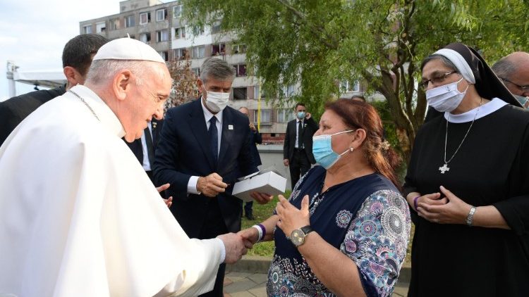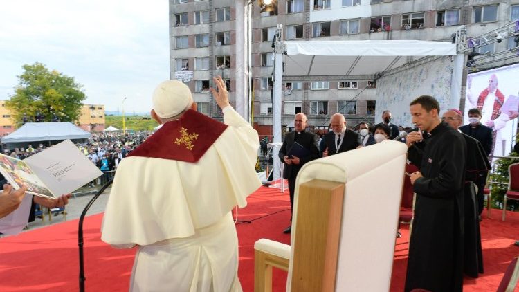Ferenc pápa elismeréssel szólt a szalézi misszióról, melyet 2008 óta folytatnak a kassai külvárosi romatelepen. Nehéz munka ez, ami nemcsak fáradságos, de olykor meg nem értésbe és hálátlanságba ütközik még az egyházon belül is. Tartsanak ki a peremre szorultak mellett, legyenek azok romák, menekültek vagy bebörtönzöttek. Bešenyei Péter atya munkáját méltatva kiemelte, hogy az nem szociális ellátás, hanem személyes törődés. Ne féljetek a kirekesztett embereken segíteni! Észre fogjátok venni, hogy Jézuson segítetek. Ő ott vár rátok, ahol az esendőség, és nem a kényelem, a szolgálat és nem a hatalom, a megtestesülés és nem a tetszelgés fogad. Igen, ott van Jézus. Lépjetek túl a félelmeken, a múlt sebein, és bizalommal, lépésről lépésre haladjatok előre: becsületes munkával keressétek meg a mindennapi betevő kenyeret, kölcsönösen bízzatok egymásban! – köszönt el Ferenc pápa az őt éljenző több ezer cigánytól, akik a kassai külváros Luník IX romatelepén élnek.