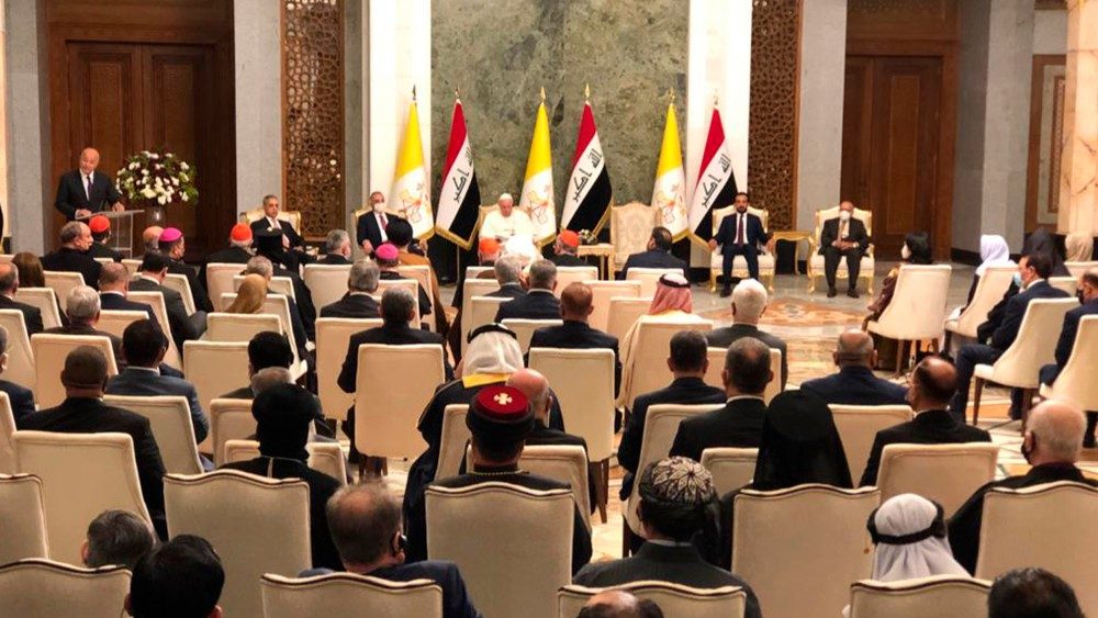 Այսօր Իրաքը կանչուած է բոլորին ցոյց տալու, որ «տարբերութիւնները փոխանակ հակամարտութեան առիթ ըլլալու պէտք  են ըլլալ ներդաշնակ համագործակցութիւն քաղաքացիական կեանքէն ներս» նշեց Սրբազան Պապը հաստատելով, որ «եղբայրական համակեցութիւնը կարիքը ունի անկեղծ եւ համբերող երկխօսութեան, որ երաշխաւորուած ըլլայ արդարութեամբ եւ օրէնքի յարգանքով»։