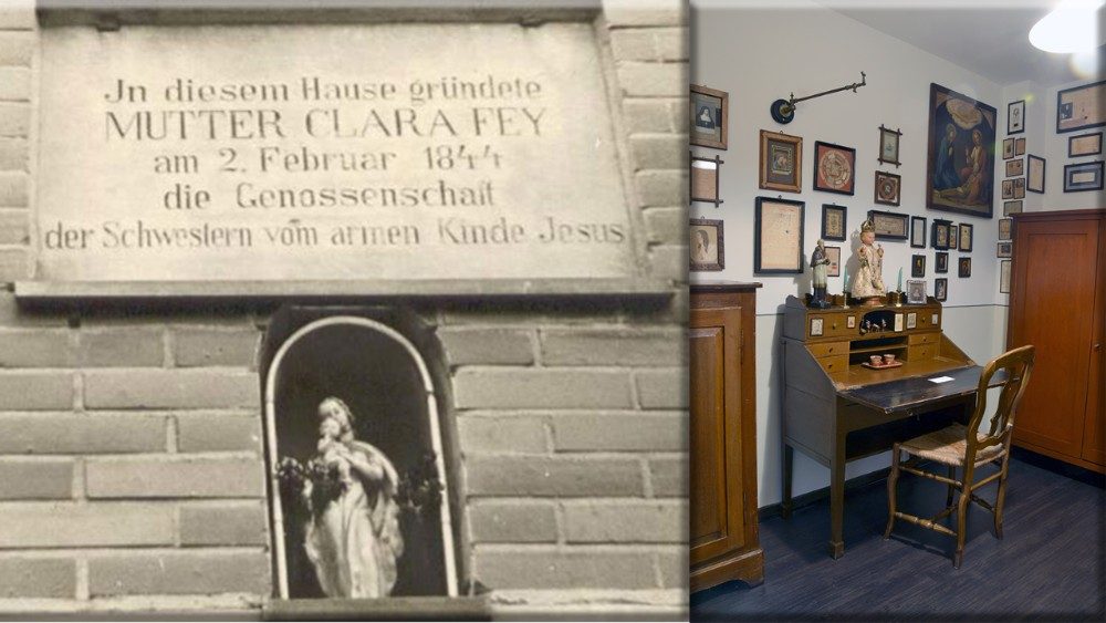 Erano gli anni dell’industrializzazione e anche ad Aquisgrana i poveri si moltiplicavano. La piccola Clara entrò presto in contatto con la povertà e la sofferenza che vivevano gli operai della fabbrica tessile di suo padre, tanto che con la sua eredità iniziò un’attività di accoglienza per i bambini orfani e disagiati. Dopo aver aperto una scuola per i piccoli, ai quali venivano regalate le tanto bramate scarpe, le fu concesso di utilizzare l’antico monastero domenicano in Jakobstrasse. Assieme alle altre suore indossava l’abito nero con lo scapolare bianco dei Domenicani, ma quando presero i voti definitivi e lei divenne Madre Superiora, la nuova congregazione si basò sulla Regola di Sant’Agostino e iniziò a occuparsi anche dell’istruzione delle giovani donne, come ricorda ancora il card. Amato: “Mentre la società era sollecita nel favorire il progresso materiale, questa autentica eroina del Vangelo di Cristo si preoccupò di promuovere la dignità delle giovani povere, educandole e proteggendole dai pericoli dell’abbandono e dell’emarginazione”.