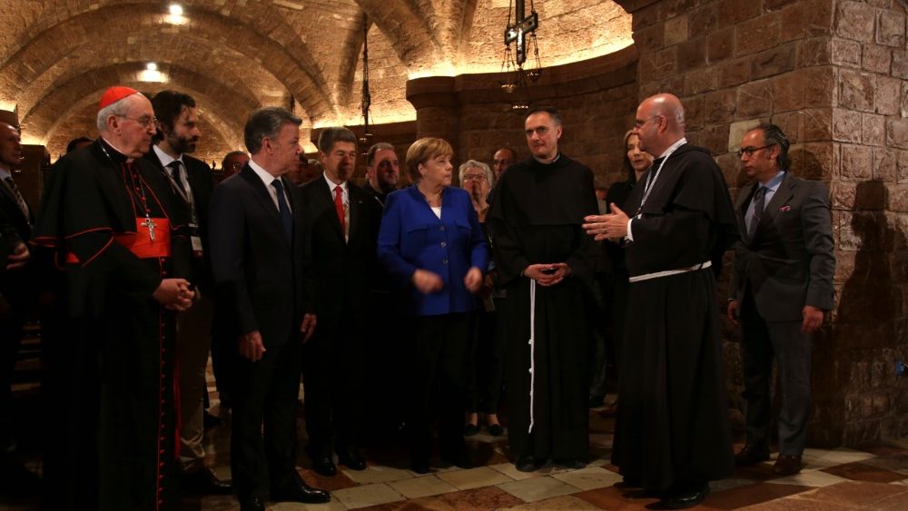 Dopo l’omaggio della Cancelliera tedesca Angela Merkel alla tomba di San Francesco d’Assisi, nella Basilica superiore si è svolta la cerimonia di consegna della Lampada della Pace, un premio che negli anni è stato dato ad eminenti personalità distintesi per l’impegno civile, culturale e politico. Tra di loro i Papi: Giovanni Paolo II (1986), Benedetto XVI (2011) e Francesco (2015) ma anche l’ex Presidente russo Gorbaciov, Madre Teresa di Calcutta e il Presidente colombiano Santos, già Nobel per la pace 2016, al quale è stata data la Lampada  per lo sforzo profuso nel processo di pace con le Farc, Forze Armate Rivoluzionarie della Colombia.