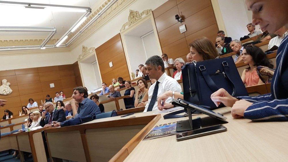 Questa mattina un gruppo di giornalisti, con i loro familiari, ha partecipato all’udienza generale di Papa Francesco, che li ha salutati al termine della catechesi. Alessandra Ferraro, giornalista Rai, vicecaporedattore della sede regionale della Valle d’Aosta, che presenta i relatori del Meeting, ricorda i tre i punti chiave che Papa Francesco ha sottolineato nel suo incontro coi giornalisti italiani del settembre del 2016: “Amare la verità, che è alla base della nostra professione, vivere con professionalità e in particolar modo rispettare la dignità umana”.