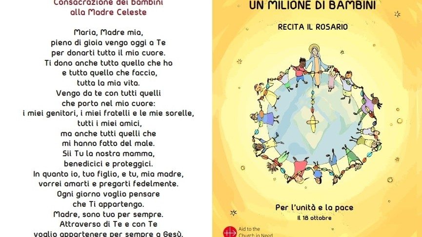 Come accade dal 2005, la Fondazione Pontificia Aiuto alla Chiesa che Soffre, ha invitato i bambini di tutto il mondo a pregare il Rosario per la pace e l'unità. Tuttavia, quest'anno l'intenzione di preghiera è stata estesa anche in favore di Asia Bibi, la donna pakistana cattolica incarcerata da circa dieci anni con la falsa accusa di blasfemia e in attesa di sapere se verrà condannata a morte o assolta.