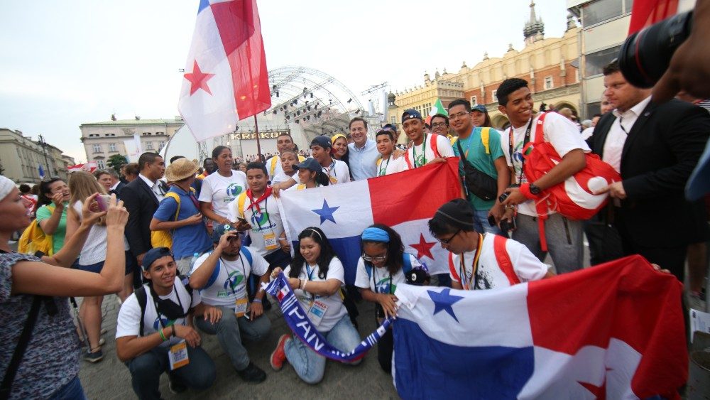 Il Presidente Juan Carlos Varela con i giovani panamensi alla Gmg di Cracovia nel 2016