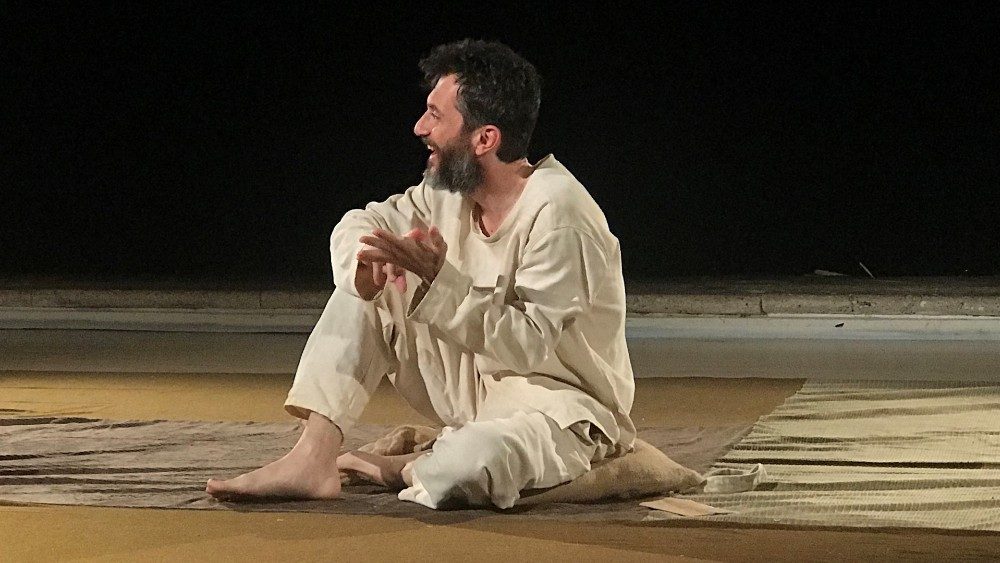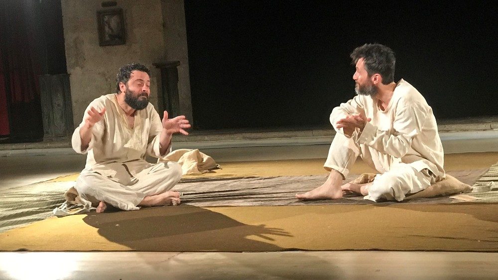 Lo spettacolo però non offre solo spunti di riflessione sul rapporto tra cristiani e musulmani. “Simeone e Samir”, come tutte le opere presentate in occasione della rassegna “I Teatri del Sacro”, vuole portare gli spettatori di tutte le età a riflettere sul significato delle Opere di Misericordia. In questo caso, viene richiamata l’opera spirituale “istruire gli ignoranti”. Quando il ricordo dell’“insegnamento” di San Francesco irrompe nella discussione tra Simeone e Samir, inizia l’ascolto, il dubbio, il discernimento e la crisi delle proprie certezze. Da quel momento, le parole trasformano in dialogo: prende vita la comprensione, la collaborazione e i due andranno insieme verso la salvezza.