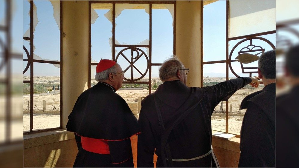 Qui, sulla riva occidentale del fiume Giordano, nei Territori Palestinesi ora occupati dallo stato d'Israele, si fa memoria del Battesimo di Gesù, e nel 1950 sono state scoperte le rovine di una cappella del IX secolo. All'interno del sito si trova il piccolo convento francescano, circondato dal 1967, durante la Guerra dei sei giorni, da un campo minato che è stato bonificato solo negli ultimi anni. Il cardinal Sandri e il custode padre Patton lo visitano con il nunzio apostolico in Israele e Palestina monsignor Leopoldo Girelli e una delegazione di frati francescani. A fare da guida padre Eugenio Alliata, archeologo dello Studium Biblicum Franciscanum e direttore del Terra Sancta Museum. Dopo la visita al convento e alla chiesa della Custodia di Terra Santa, il cardinale ha guidato un breve momento di preghiera concluso sulla riva del Giordano, presenti anche alcuni funzionari israeliani e alcuni soldati dell'esercito.