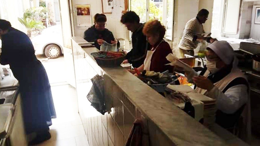 R. Ad Acireale viviamo la nostra esperienza di comunità legata al servizio mensa dei poveri. In questi giorni, non è possibile poter ospitare i poveri, accoglierli nella mensa perché si devono evitare assembramenti. Abbiamo comunque deciso di venire incontro alle esigenze di questi nostri fratelli più vulnerabili. E lo facciamo offrendo comunque il servizio pranzo dando un pacchetto con generi alimentari. Chi ha bisogno, viene a bussare all’ora del pranzo. Per coloro che vivono per strada offriamo, seppure con le dovute precauzioni, la possibilità di poter fare una doccia. Ed è anche attivo il servizio guardaroba. Stiamo sperimentando tanta Provvidenza: ci sono tante persone, tanti fedeli che ci stanno sostenendo. E ci sono attività commerciali che non possono vendere quello che avevano già acquistato e lo portano per sostenere questa opera di carità. In molti hanno accolto il nostro appello.