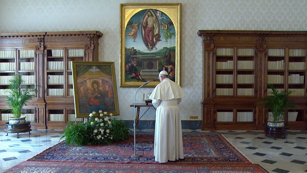 “Sotto la Tua protezione cerchiamo rifugio, Santa Madre di Dio – proseguiva l’invocazione del Papa, davanti alla copia dell’’immagine miracolosa venerata nel santuario sulla via Ardeatina, portata nella biblioteca del Palazzo apostolico - Non disprezzare le suppliche di noi che siamo nella prova, e liberaci da ogni pericolo”. Nel santuario affidato agli Oblati, Figli della Madonna del Divino Amore, il rettore don Gerardo Di Paolo, i sacerdoti, le religiose e i seminaristi hanno poi recitato ogni giorno questa preghiera, memori anche della visita che Francesco fece, il 2 maggio 2018, al Santuario.