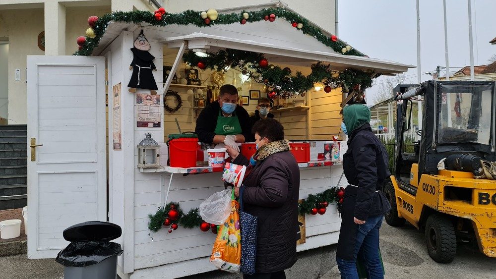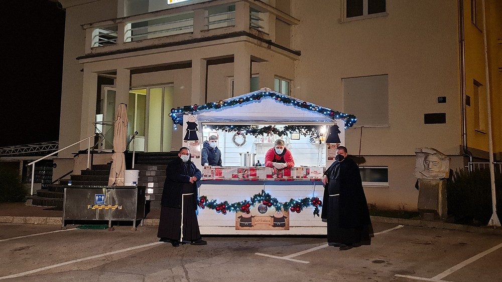Da diversi anni, al centro di Zagabria durante il tempo di Natale si organizza un mercatino natalizio molto famoso, che attrae migliaia di turisti ogni anno, durante il quale si svolgono anche numerosi eventi culturali. Dal 2018 in collaborazione con l’Ente del turismo di Zagabria, i frati hanno ideato l’iniziativa “Obrok za obrok”, cioè “pasto per pasto”. La municipalità ha messo a disposizione una piccola casetta intitolata “Casa d’Avvento dei frati”, che vuole sensibilizzare il pubblico sulle necessità dei poveri, dei senzatetto e dei più bisognosi. I frati e i volontari offrono un menù che include diverse specialità gastronomiche locali fatte da loro. Chi lo acquista aiuta a contribuire ai fondi destinati alla mensa per i poveri. In questo modo oltre alla raccolta, i frati possono far conoscere tutte le attività che svolgono a favore dei più bisognosi. “Quest’anno a causa della pandemia, il mercatino non si è potuto svolgere – racconta ancora fra Zvonimir –, allora per non rinunciare a questo aiuto importante per i nostri poveri, abbiamo pensato di fare vicino al convento, cioè davanti alla mensa per i poveri, la “Casa dell’Avvento” in modalità drive-in, dove fino alle ore 14.00 si distribuiscono i pasti ai poveri, poi dalle 16.00 alle 22.00 si offre il menu per tutti coloro che vogliono darci una mano come ogni anno. Loro acquistano il cibo e poi lo portano a casa per consumarlo nel rispetto delle misure di restrizione governative”.