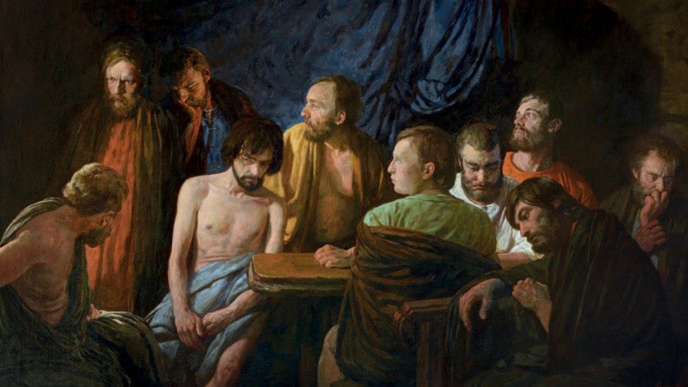 A concludere la lunga, movimentata e luminosa giornata è l’apparizione del Signore, a tarda notte, agli Undici Apostoli chiusi per paura nel Cenacolo. La reclusione di questi ultimi, caratterizzata da paura, tristezza e sconvolgimento, è dipinta dal contemporaneo russo Andreï Nikolaïevitch Mironov. Mentre una miniatura di un codice del 1476, conservato alla Biblioteca Reale di Torino, ritrae la scena di Gesù che si mostra ai suoi amici. Alle parole scritte dell'autore del libro, il teologo François Boespflug, si associa l'efficacia narrativa e visiva di immagini ricche di fascino che consentono di far rivivere il fluire di sentimenti nelle ore di quella giornata cruciale: dalla disperazione al dubbio, dalll'incredulità alla gioia incontenibile per la vittoria di Cristo sulla morte.