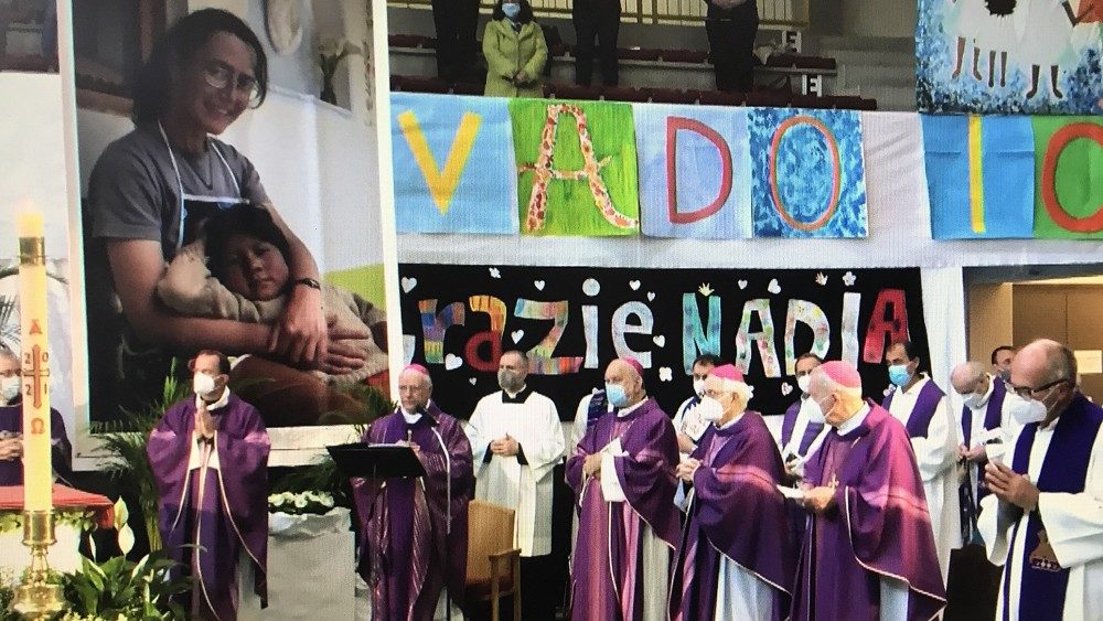 “Grazie Nadia", "Aiutaci ad essere contenti in un mondo in cui pochi lo sono". Questi alcuni dei tanti cartelli esposti all’interno del Palazzetto dello sport di Schio, in provincia di Vicenza, dove ieri pomeriggio sono stati celebrati i funerali della missionaria laica Nadia De Munari, aggredita e uccisa nella stanza da letto della sua missione a Nuevo Chimbote, in Perù.