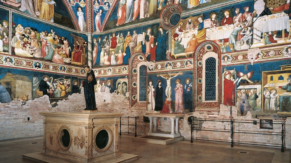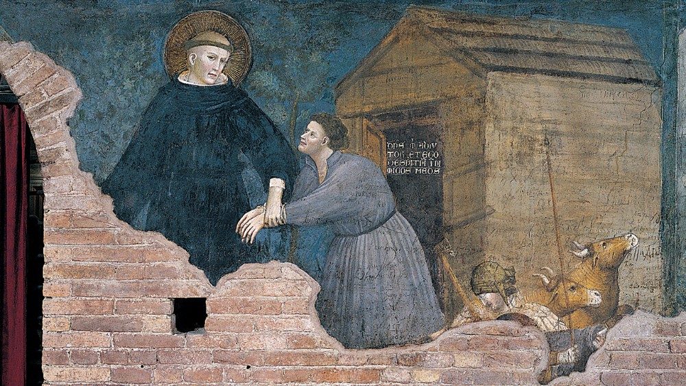 R. - San Nicola da Tolentino è morto nel 1305, è stato subito riconosciuto come un grande santo per le virtù e per i miracoli. Qui a Tolentino, la basilica di San Nicola è uno scrigno di arte. Il Cappellone della scuola di Giotto, con gli affreschi di Pietro da Rimini, è un gioiello che può stare alla pari di altri grandi capolavori come la Cappella degli Scrovegni di Padova. Cioè, è un capolavoro della pittura mondiale, così anche la basilica in stile rinascimentale. Quando parliamo della basilica di San Nicola da Tolentino, parliamo di arte del ‘400, di arte dei secoli d’oro dell’arte italiana. Quando parliamo della basilica di Santa Rita da Cascia, parliamo di arte contemporanea, dell’arte degli ultimi cento anni, perché la basilica di Cascia è stata consacrata nel 1947. Però anche in essa ci sono, veramente, cose preziose come il presbiterio di Giacomo Manzù o affreschi dei più prestigiosi artisti del 1900. Ma parliamo di due epoche diverse a livello artistico. Santa Rita è nata nel 1381, quindi non è molto lontana dall’epoca di San Nicola da Tolentino. Lei aveva proprio in San Nicola da Tolentino il suo santo patrono, cioè si rivolgeva a lui, a Sant’Agostino e a San Giovanni Battista per essere aiutata nelle sue vicende familiari, nella sua storia matrimoniale con Paolo, nella sua opera di educazione verso i figli. Noi sappiamo, quindi, che fra Santa Rita e San Nicola da Tolentino c’è un grandissimo legame, un legame proprio spirituale, che questo gemellaggio, adesso, quest’anno, in qualche modo, fa di nuovo brillare.