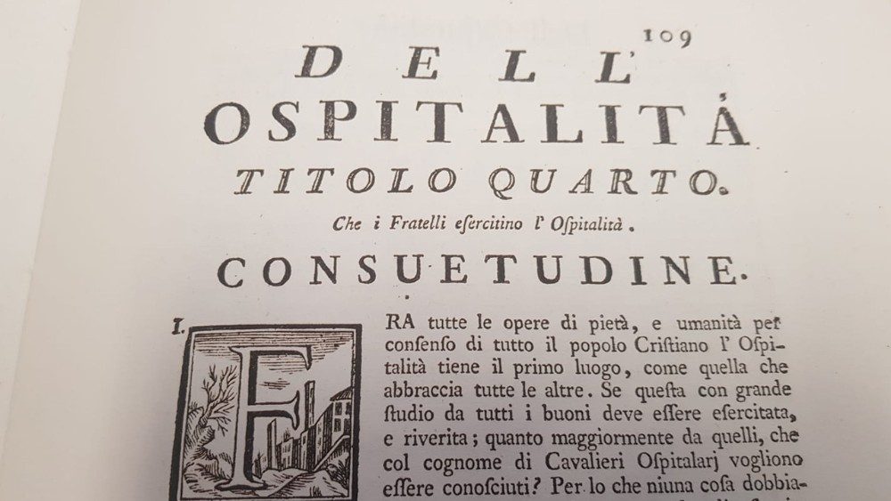 È quanto riaffiora, con la finezza di una elegante riproduzione tipografica, dal “Regolamento della Sacra Infermeria” dell’Ordine di Malta edito nel 1725 e riproposto in cofanetto – in copie anastatiche di pregio, curate dalla casa editrice Antiga – con il corredo di un volume che in tre lingue – italiano, inglese e francese – approfondisce e ribadisce con contributi e firme di primo piano la missione dell’Ordine ospedaliero. Missione che dal fondatore Fra’ Gerardo Sasso, poco dopo il 1100, all’attuale Luogotenente di Gran Maestro Fra’ Marco Luzzago, nove secoli dopo, tiene nel cuore chiunque abbia bisogno di aiuto – malato, povero, rifugiato. Cambiata l’organizzazione, evoluta la tecnologia, il “servizio di carità”, annota nel suo testo il cardinale Silvano Maria Tomasi, delegato speciale del Papa per l’Ordine melitense, continua in ogni caso a essere “l’acqua fresca” che suggerisce “nuove strade per vivere il carisma iniziale”.