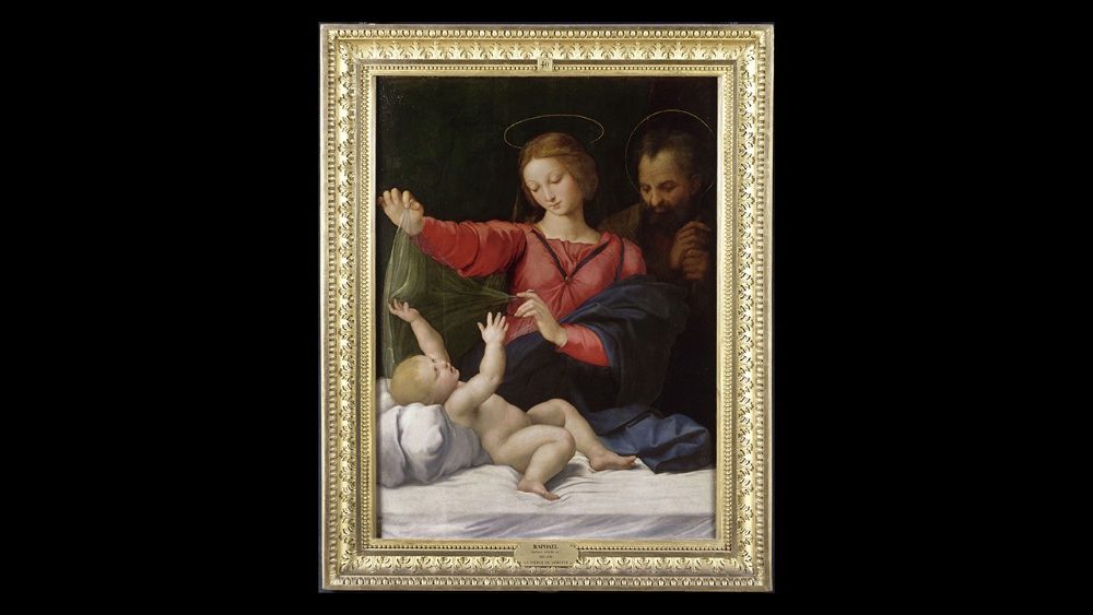 Il dipinto fu eseguito da Raffaello alla fine del pontificato di Giulio II, tra il 1511 ed il 1512, subito dopo il completamento della decorazione della Stanza della Segnatura. Veniva esposto nella Chiesa di Santa Maria del Popolo a Roma insieme al Ritratto di Giulio II della National Gallery di Londra. “Le due opere – spiega a Vatican News il curatore scientifico della mostra Fabrizio Biferali – sono sovrapponibili come formato ed erano legate tra loro. L’olio su tavola mostra la Vergine che svela o copre il Bambino Gesù, gesticolante e giocoso”.