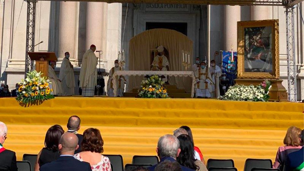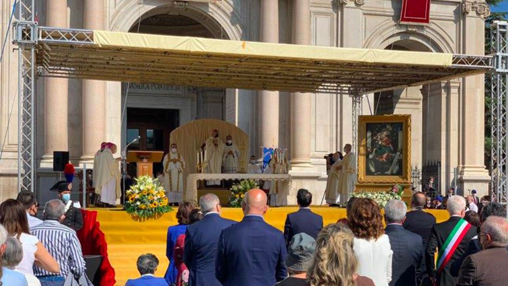 Monsignor Battaglia ha rimarcato che a Maria c’è da volgere lo sguardo “dinanzi alla complessità di un tempo storico in cui le avversità sembrano tarpare le ali all’entusiasmo del futuro e l’egoismo dei cuori appare il pericolo più grande per l’intera umanità e perfino per il pianeta”. Il presule è stato accolto dalle parole di benvenuto di monsignor Tommaso Caputo, arcivescovo prelato di Pompei, che ha descritto il profondo legame fra il capoluogo campano e la valle scelta da Bartolo Longo per fondare le sue opere dedicate a Maria. Proprio a Napoli il giovane avvocato di origini pugliesi trovò l’immagine della Vergine del Rosario per diffondere la devozione a Maria. Quel dipinto, oggi noto in tutti i continenti, ha raccontato monsignor Caputo, gli venne affidato da una religiosa domenicana del Convento del Rosariello.