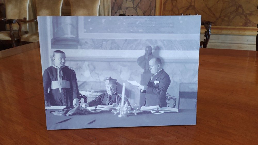 Testimonianza della fine del potere temporale della Chiesa è la teca che conserva la Bandiera Pontificia ammainata da Castel Sant’Angelo il 21 settembre 1870, all’indomani della Breccia di Porta Pia. Fino ai nostri giorni all’interno di questo edificio, divenuto luogo di riferimento per la vita della comunità diocesana, si sono scritte intense pagine di storia: ne è una testimonianza il registro con le firme dei Patti Lateranensi dell'11 febbraio 1929.