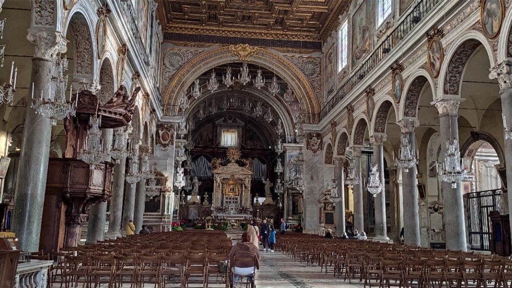 Sotto il tempietto circolare di Sant’Elena, ricostruito dopo le razzie napoleoniche nel 1833, si trova un altare cosmatesco del XII secolo, dove ai lati dell’arco di una finta porta con l’agnello ci sono i rilievi di Augusto e la Vergine con il Bambino.