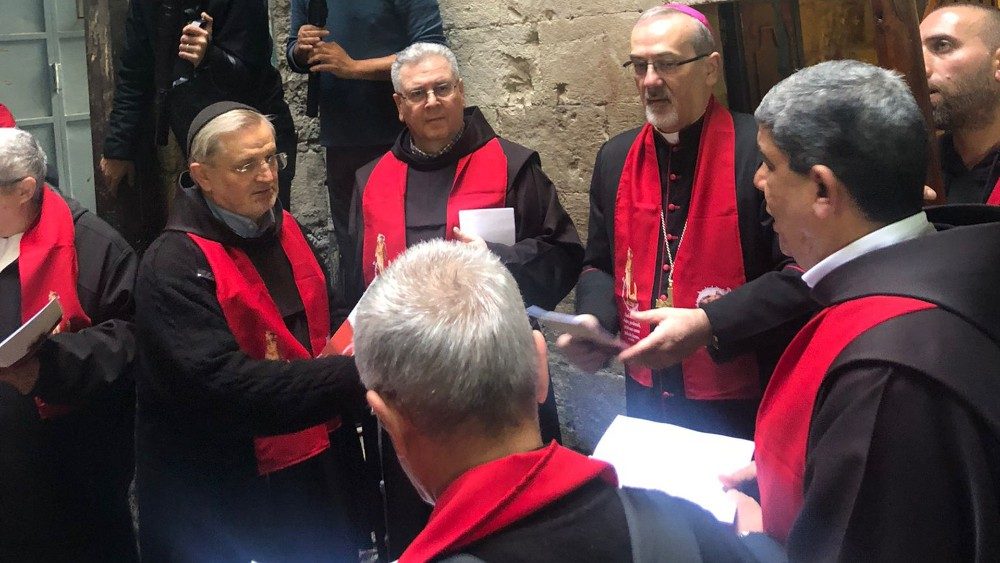 Una cerimonia ‘riparatrice’ convocata dal vicario custodiale padre Ibrahim Faltas all’insegna del perdono. “Padre, perdonali, perché non sanno quello che fanno”, era scritto infatti sulle stole rosse indossate da tutti gli studenti, cioè le parole di Gesù Cristo verso i suoi crocifissori (Lc 23, 33-34). “Vogliamo dare un messaggio a tutti: che bisogna perdonare”, dice padre Faltas a Vatican News. Da qui la scelta del luogo da cui avviare la processione: “Abbiamo iniziato attorno alla statua distrutta. Tutti sono rimasti colpiti e rattristati da quello che è stato fatto e abbiamo voluto così insegnare ai nostri studenti il perdono”.