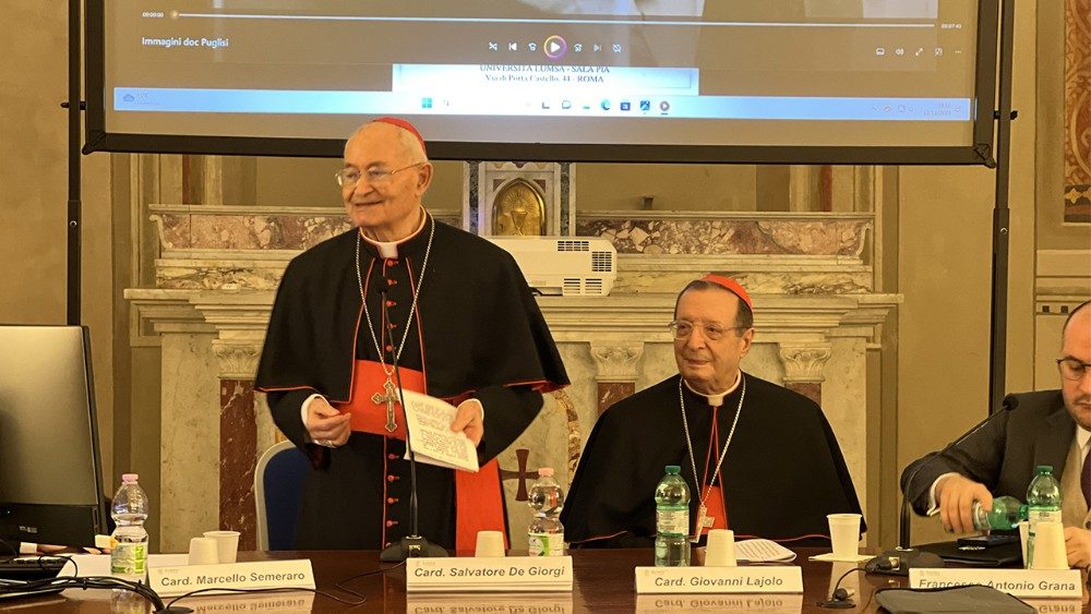 Anche Papa Francesco è voluto essere presente all’incontro, attraverso un messaggio rivolto al rettore della Lumsa Francesco Bonini e ai partecipanti, tra cui il cardinale Marcello Semeraro, prefetto del Dicastero per le Cause dei Santi. Nell’occasione è stato presentato anche il libro del cardinale Salvatore De Giorgi, arcivescovo emerito di Palermo, dal titolo “Il Beato Giuseppe Puglisi. La voce del sangue”, che raccoglie le omelie pronunciate dal porporato nella cattedrale di Palermo, durante le messe nell’annuale ricordo della morte di don Puglisi. “Io ho introdotto la causa della sua beatificazione dopo cinque anni dalla sua sacrilega uccisione – ha raccontato De Giorgi – e quindi ogni anno all’apertura dell’anno pastorale, celebravo la Santa Messa mettendo come esempio virtuoso la sua figura eroica davanti a tutti noi sacerdoti, ricordando i suoi insegnamenti, rapportati anche al cammino che la Chiesa in quel momento faceva. La beatificazione di don Puglisi per me è stato un grande mistero di grazia, dall’aver potuto seguire tutto il processo, e poi la firma del decreto di beatificazione che portava la data del 28 giugno, che coincide con il giorno della mia ordinazione sacerdotale. Poi la data in cui è avvenuta la beatificazione è stato il 25 maggio, che è anche quella del mio ingresso a Palermo e proprio nel 2013 compivo sessant’anni di sacerdozio. Quindi ringrazio il beato don Pino che sicuramente mi assiste dal cielo, dove sicuramente prega per tutti noi”