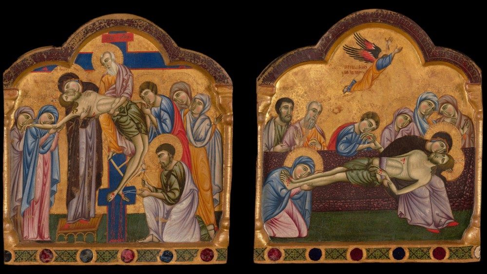 Particolare delle piangenti nel Dossale opistografo della deposizione