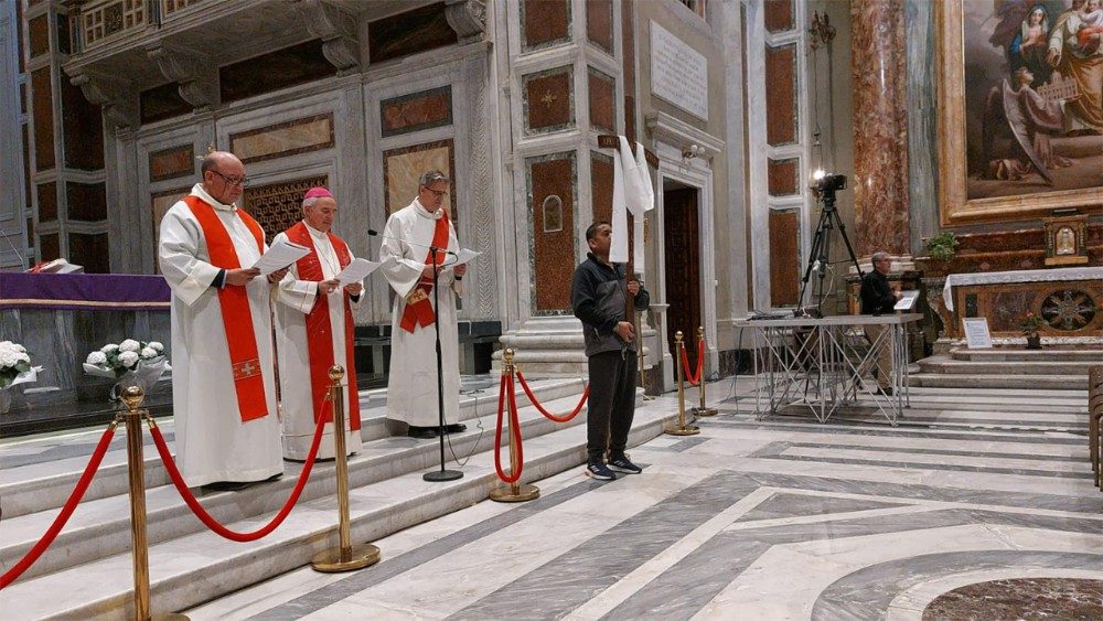All’interno della Basilica si vive la prima stazione: Gesù ci guarda con amore. “Questa sera – si legge nel libretto delle meditazioni – scegliamo non soltanto di vedere chi ci circonda ma di essere visti a nostra volta, di essere toccati dallo sguardo dell'altro, che può avere un potere di cambiamento profondo. Consapevoli che in quello sguardo possiamo trovare Dio”. Il corteo composto da persone comuni, ospiti dell’ostello Di Liegro, poveri, suore e sacerdoti si sposta all’esterno su via Marsala. Le preghiere scandiscono i passi insieme al frastuono del traffico del venerdì, degli annunci che arrivano dalla stazione, da chi corre per qualcosa di importante. Il contrasto però pian piano si attutisce, c’è chi guarda con curiosità questa umanità che cammina, chi si ferma, chi si fa il segno della croce. Non c’è indifferenza ma forse curiosità per comprendere questa Via Crucis che sembra inusuale in un luogo così.