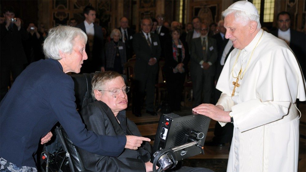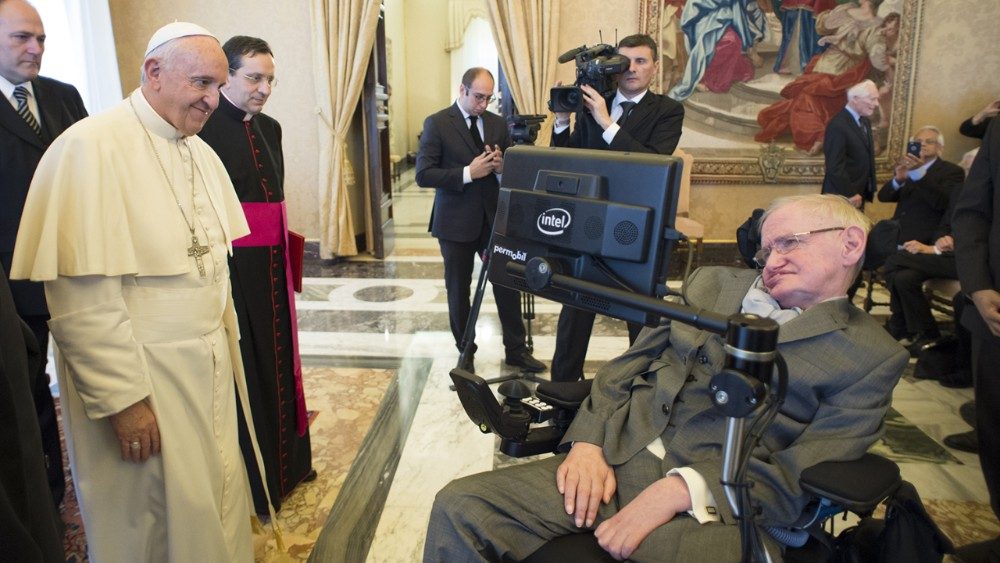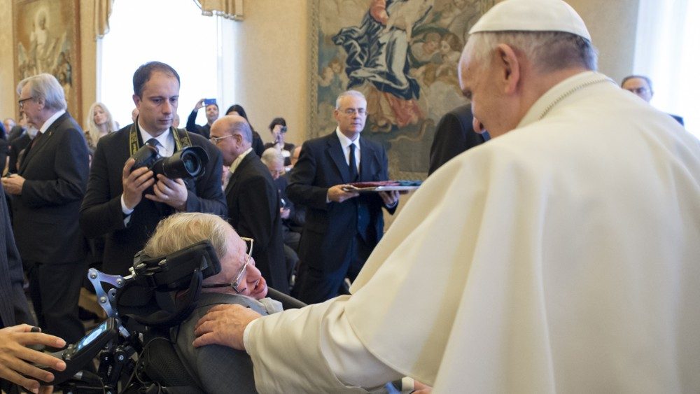 “Ricordatevi di guardare le stelle e non i vostri piedi. Per quanto difficile possa essere la vita, c’è sempre qualcosa che è possibile fare, e in cui si può riuscire”. La vita dell’astrofisico Stephen Hawking, uno degli scienziati più celebri e brillanti degli ultimi decenni, può essere sintetizzata nella parola “sfida”, non solo per le sue teorie sui buchi neri, sulla cosmologia quantistica e sull’origine dell’universo, ma anche per la tenacia con la quale ha affrontato la sclerosi laterale amiotrofica, diagnosticata all’età di 21 anni. Teorico della non necessità dell’intervento di Dio nella creazione, è, comunque, nominato membro della Pontificia accademia delle scienze nel 1986 e incontra quattro pontefici: Paolo VI il 9 aprile 1975, Giovanni Paolo II il 3 ottobre 1981, Benedetto XVI il 31 ottobre 2008 e Francesco il 28 novembre 2016. “Il mondo – aveva rimarcato Papa Ratzinger durante l’incontro con i membri della Pontificia accademia delle scienze, riuniti per discutere delle teorie scientifiche sull’evoluzione dell’universo e della vita – lungi dall’essere originato dal caos, somiglia a un libro ordinato”.