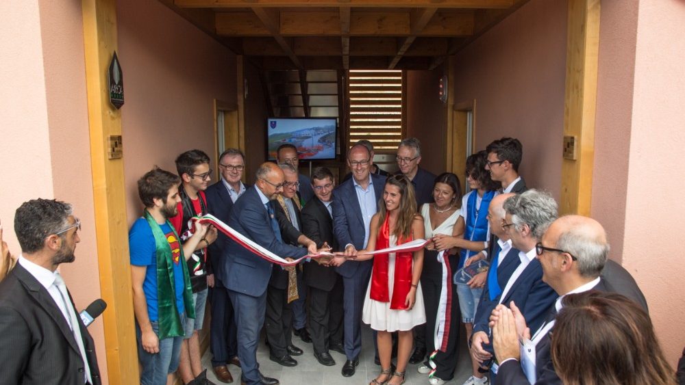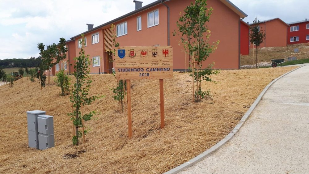 20 edifici, disposti su 6 terrazzamenti, ognuno dei quali è diviso in 4 appartamenti di 100 metri quadrati, destinati ad ospitare un totale di 456 studenti. Sono questi i numeri e le dimensioni del nuovo studentato universitario a Camerino, nelle Marche, inaugurato nei giorni scorsi e realizzato grazie al contributo finanziario della Provincia autonoma di Trento, di quella di Bolzano e del Land austriaco del Tirolo.