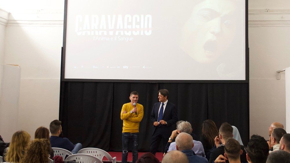 La proiezione del film è avvenuta alla presenza di Emanuele Marigliano, interprete ed espressione degli stati d’animo di Caravaggio, che ha potuto raccontare la sua esperienza fatta di luci ed ombre e la sua storia di redenzione, che tanto ha in comune con la continua ricerca di misericordia di Caravaggio: i traffici di Scampia, la detenzione da giovanissimo, e il riscatto per amore di sua figlia. Oggi è alla guida di un comitato per la riqualificazione di Scampia e fa l’elettricista. Ed è proprio come aiuto elettricista della troupe del film durante le riprese a Napoli, che Emanuele viene notato dal regista e dallo staff di Sky. Un incontro casuale che rappresenta per lui una ulteriore possibilità di svolta.