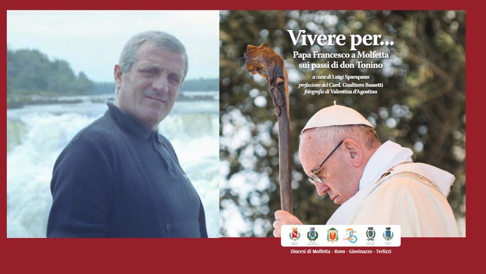 Parlando del volume documentativo, pubblicato con il patrocinio dei Comuni della diocesi e col sostegno dell’Opera Pia Monte di Pietà e Confidenze di Molfetta, Luigi Sparapano ricorda anche che “per la prima volta il pastorale di don Tonino Bello, fatto in legno di ulivo, è stato tolto dalla nicchia che lo custodisce nella cattedrale di Molfetta” per essere “utilizzato da Papa Francesco durante la Messa”. “Credo che proprio quel pastorale – conclude – sia diventato il segno di questa perfetta sintonia di animi e di idee tra don Tonino e Papa Francesco. Del resto, non è infrequente leggere nei discorsi del Papa espressioni che ripeteva don Tonino, come: chi non vive per servire non serve per vivere”.