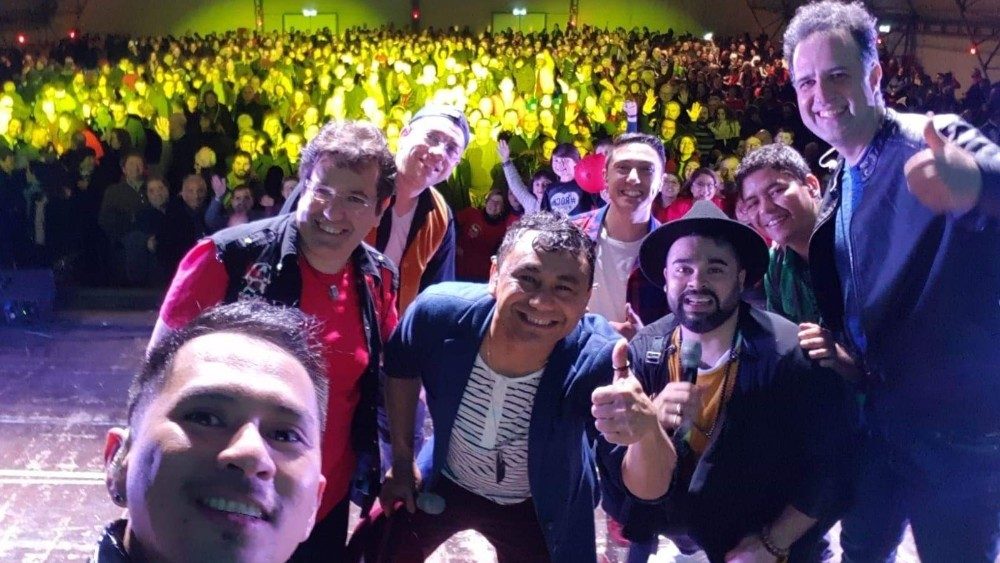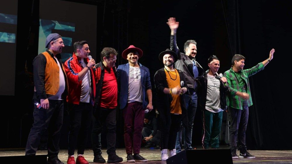 La band arriverà a Roma direttamente dalla Giordania, dove in queste settimane è stata impegnata in diversi spettacoli e laboratori artistici anche con i rifugiati iracheni e siriani, in particolare i giovani. Momenti di condivisione di capacità e idee, ma ancora di più di ciò che ciascuno è. Sulla risposta dei giovani Emanuele ci dice: “ È stata bellissima, e questo ci fa capire come i giovani in Giordania, i giovani in Asia – l’anno scorso siamo stati in cinque nazioni dell’Asia, l’anno prima in Brasile – hanno sempre una nota molto comune tra tutti: il bisogno di sentirsi accettati, accolti, apprezzati per quello che fanno, di sentire che c’è qualcuno che presta loro attenzione. E questa è l’esperienza che facciamo insieme”.