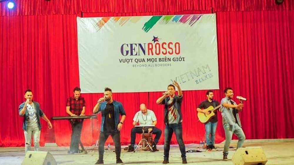Principi che i componenti del Gen Rosso mettono in musica, ma in cui credono veramente e che vogliono vivere nel quotidiano. “In realtà, l’esperienza del Gen Rosso – spiega Emanuele - parte sempre da qualcosa di realmente vissuto, in prima persona, da uno degli artisti che hanno fatto parte del Gen Rosso in questi 53 anni di vita: oltre 250 dei cinque continenti hanno preso parte al progetto del Gruppo per alcuni frammenti della loro vita. Noi veramente crediamo in quello che cantiamo. Quando cantiamo su un palco o componiamo una canzone, tutto parte sempre da un’esperienza condivisa. A volte non è semplice questa condivisione, perché persone da altre parti del mondo hanno abitudini, culture, modi pensare e anche modi di creare che sono molto diversi. Soprattutto il mondo musicale apre spazi a contaminazioni che spesso fanno parte del luogo in cui una persona ha vissuto. Quindi a volte uno di noi fa un passo indietro, vorrebbe un ritmo più etnico e invece dall’altra parte viene fuori un ritmo più pop, oppure suggerisce un tipo di linguaggio più espressivo, mentre alcune culture preferiscono un tipo di linguaggio più introspettivo… Però, alla fine, questa è l’esperienza che viviamo, cioè quella di costruire insieme le canzoni".