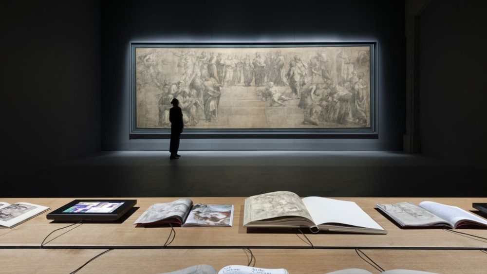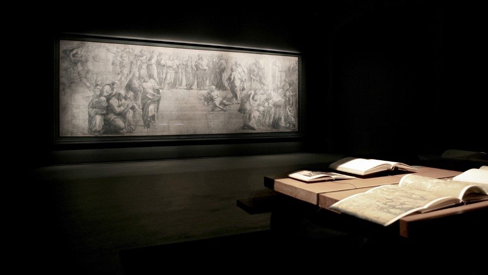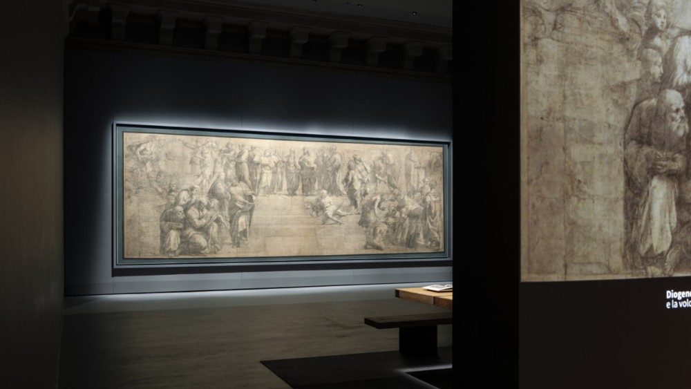“Nel cartone, rispetto alle pitture, – sottolinea ancora mons. Alberto Rocca – mancano la figura del “penseroso”, nel quale si è soliti riconoscere il volto di Michelangelo, l’autoritratto di Raffaello e il ritratto del Sodoma”. Il direttore della Pinacoteca inoltre mette in luce la delicatezza dell’intervento di restauro eseguito su “un’opera non pensata per la lunga conservazione: oggi lo stato di salute del Cartone è ottimo”. Un merito ascrivibile a quanti in questi anni hanno lavorato con pazienza e precisione ad un capolavoro la cui storia è stata particolarmente travagliata: requisito nel 1796 dal commissario francese Peignon, nell’ambito delle depredazioni napoleoniche, dopo Waterloo nel 1815 esso venne restituito, ma durante il viaggio di ritorno in Italia l’acqua si infiltrò nella cassa che lo conteneva, dando origine a muffe che ne minacciarono la conservazione. Durante la Grande Guerra inoltre fu trasferito a Roma per essere posto al sicuro dai bombardamenti. Il recente lavoro di conservazione è stato condotto dal 2014 ad oggi da un prestigioso Comitato Scientifico composto tra gli altri da esperti dell’Ambrosiana, dell’Istituto Superiore per la Conservazione e il Restauro e dei Musei Vaticani.