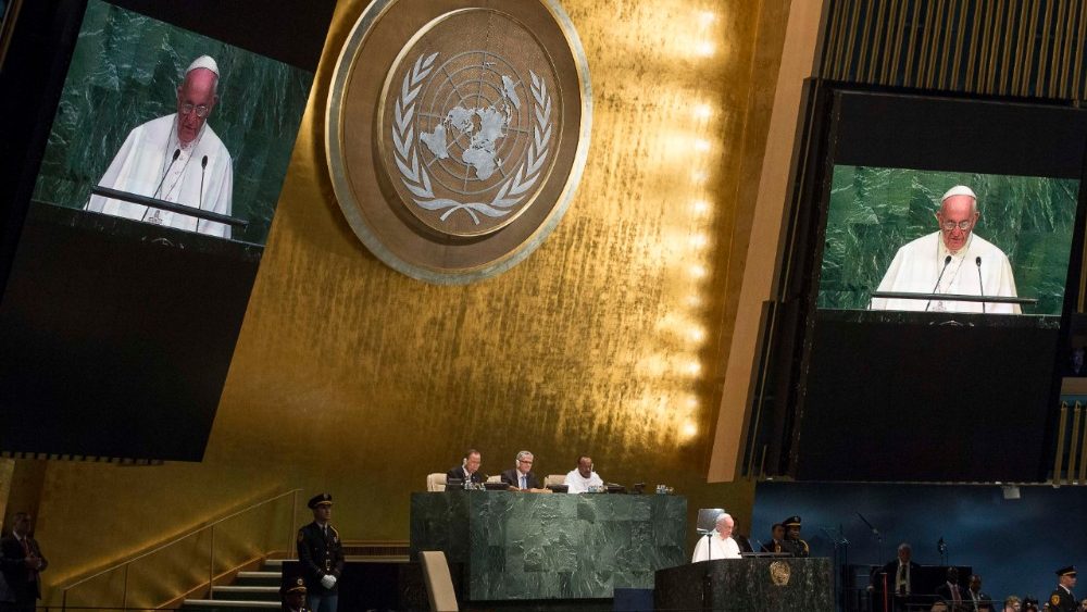 Papa Francesco è stato il quinto pontefice a visitare il quartiere generale dell’Onu a New York, incontrando l’allora Segretario Generale Ban Ki-moon. Un discorso storico quello tenuto il 25 settembre 2015. Parole, le sue, che sottolineano la necessità di mettere in campo ogni sforzo possibile per assicurare l’inclusione sociale e la tutela dell’ambiente, uno dei pilastri del pontificato di Francesco. "Nell'immagine di Papa Francesco di un mondo che non può più essere suddiviso in blocchi, l’Onu si inserisce perfettamente, concorrendo alle attività di cui gli Stati hanno bisogno”, conclude Buonomo.