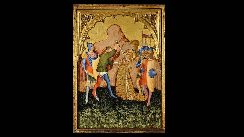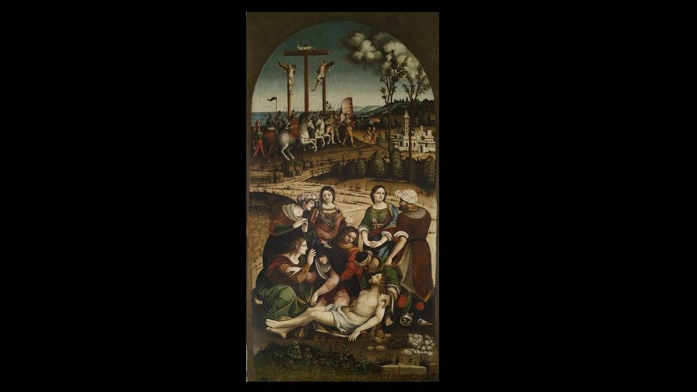 Crocifissi lignei e raffigurazioni della Pietà di ambito tedesco, meglio note come vesperbild, che ancora oggi favoriscono le preghiere dei fedeli all’interno delle chiese. In catalogo nomi celebri come Jacobello del Fiore, con la serie delle Scene della vita di Santa Lucia provenienti dal Palazzo dei Priori di Fermo; Vittore Crivelli con la Madonna orante, il Bambino e angeli musicanti di Sarnano; Cola dell’Amatrice di cui spicca la Natività con i santi Gerolamo, Francesco, Antonio da Padova e Giacomo della Marca dalla sacrestia della Chiesa di San Francesco ad Ascoli Piceno. E da Roma Giovanni Baglione e Giovanni Serodine che dalla Svizzera seguì nella capitale l’esempio di Caravaggio. Si tratta di autori la cui fama varcò i confini italiani e che hanno avuto un contatto con le Marche contribuendo a modificare la geografia della storia dell’arte.
