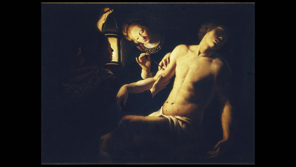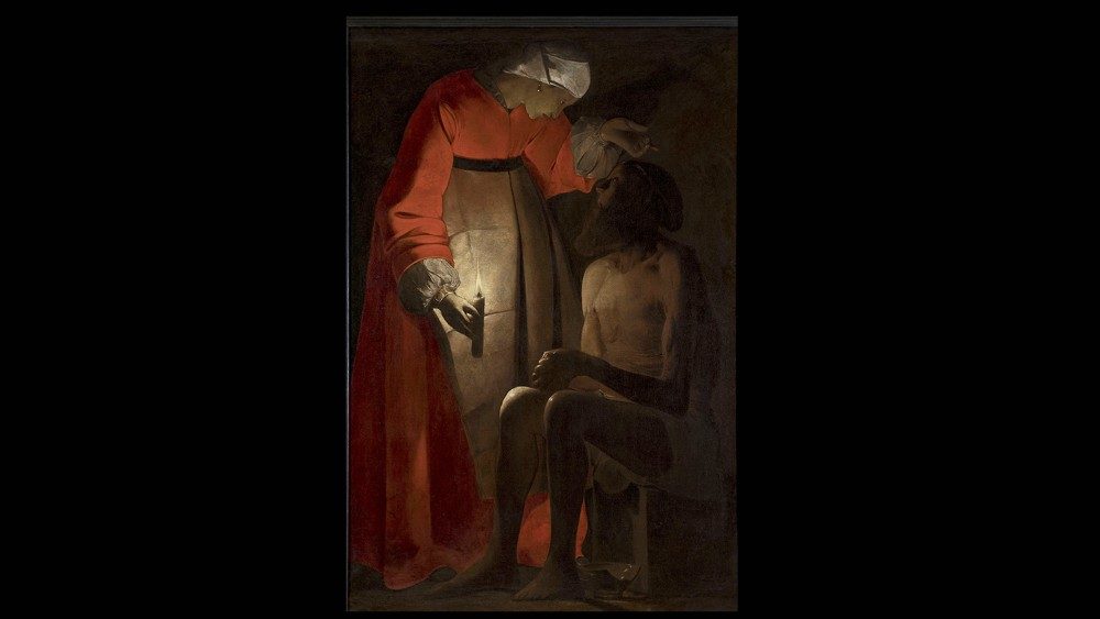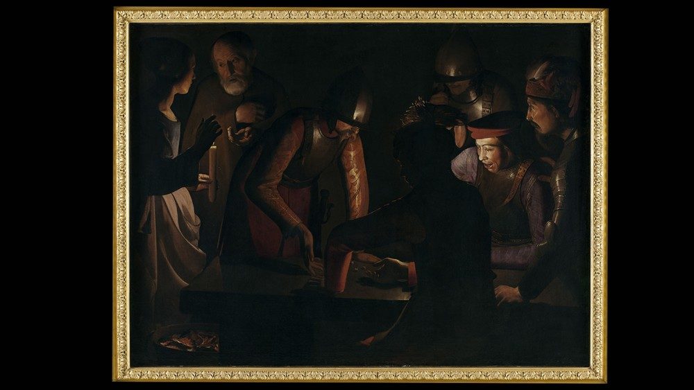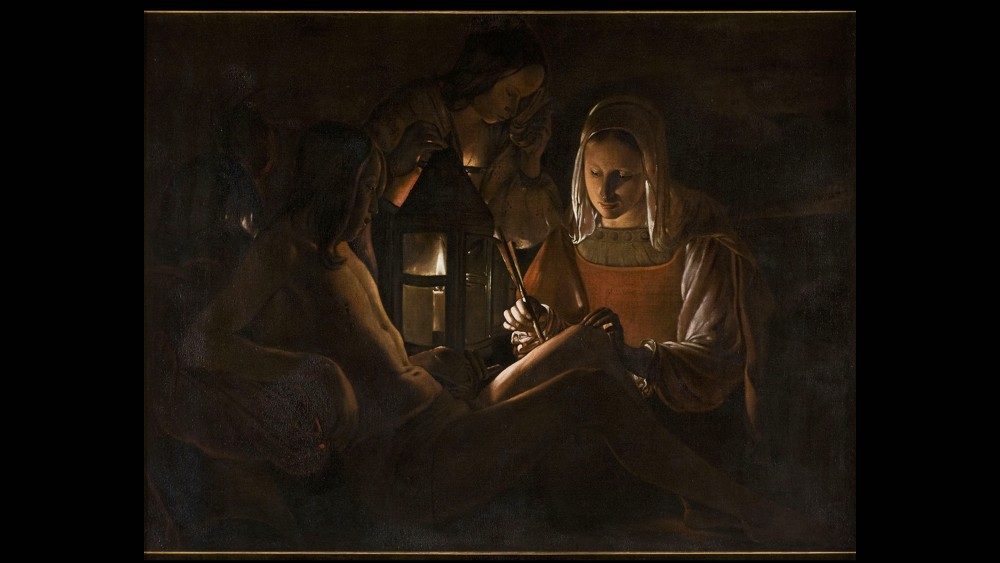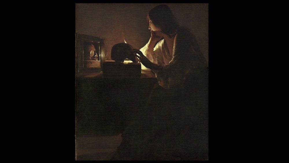 I notturni rischiarati dal flebile chiarore di una lampada ad olio rendono la pittura di La Tour unica e di grande successo nell’Europa del XVII secolo. La singolare coincidenza di soggetti ha indotto spesso la critica ad accostarlo a Caravaggio. Eppure non c’è riscontro documentario di alcun viaggio compiuto in Italia. La meravigliosa “Maddalena” proveniente dalla National Gallery di Washington riesce a far comprendere le ragioni del paragone con Michelangelo Merisi: nella composizione, dove sacro e profano si confondono, è infatti raffigurata una santa senza aureola, isolata in un’ambientazione notturna. “Il chiaroscuro – spiega a Vatican News la curatrice della mostra Francesca Cappellettti – consente ai due artisti di raggiungere esiti di potente drammaticità”.